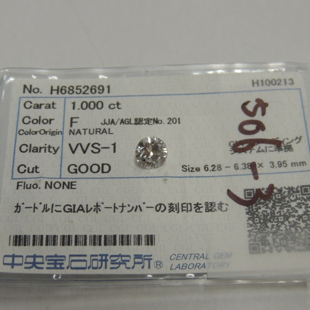 ルース F-VVS1-GOOD 中ソ GIA鑑 石目:1.000