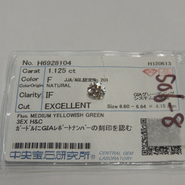 ルース F-IF-EX 中ソ GIA鑑 石目:1.125