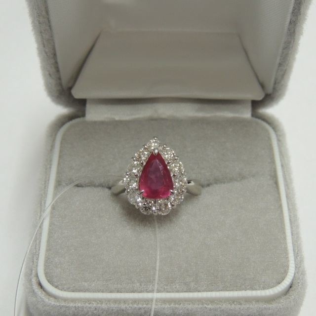 リング ルビー ダイヤ Pt900 10.40g GRJソ 石目:R2.519 D1.24