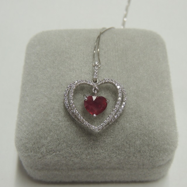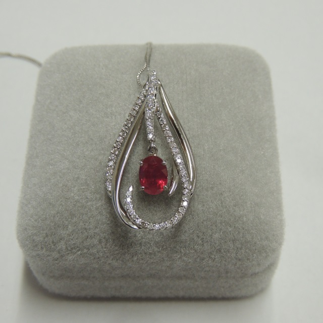 ネックレス 天然コランダム ルビー ダイヤ Pt900/K18WG 8.00g GRJソ 石目:R1.72 D0.46