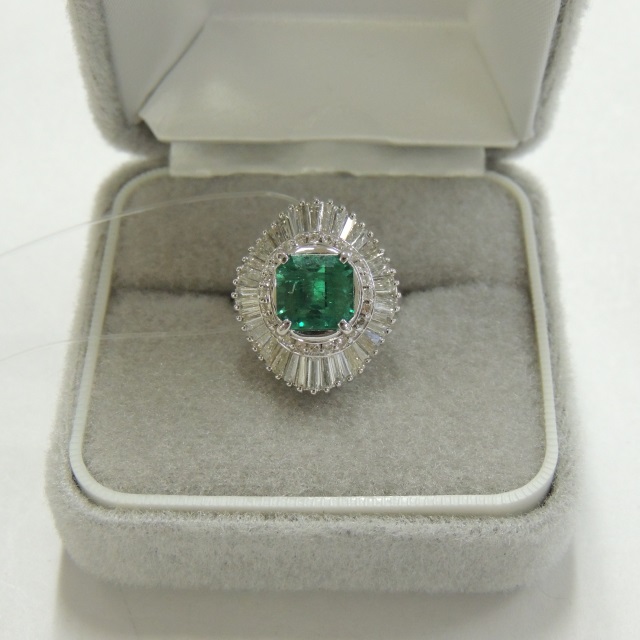 リング エメラルド Pt900 12.90g GRJ鑑 石目:E2.842 FD1.55
