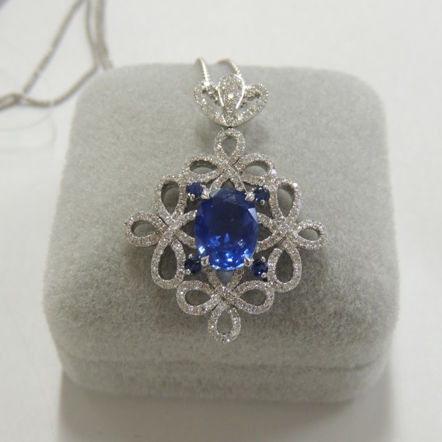 ペン・ネック サファイア ※重量トップのみ ラバーネック セット K18/Pt900 14.70g ケース 石目:S3.55 D0.03 D1.53