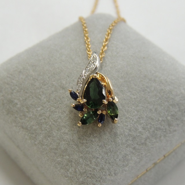 ネックレス トルマリン サファイヤ K18/Pt900 7.40g 石目:TL1.72 S0.24 FD0.08