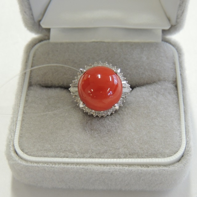 リング サンゴ13.2mm Pt900 14.20g GRJソ 石目:FD0.58