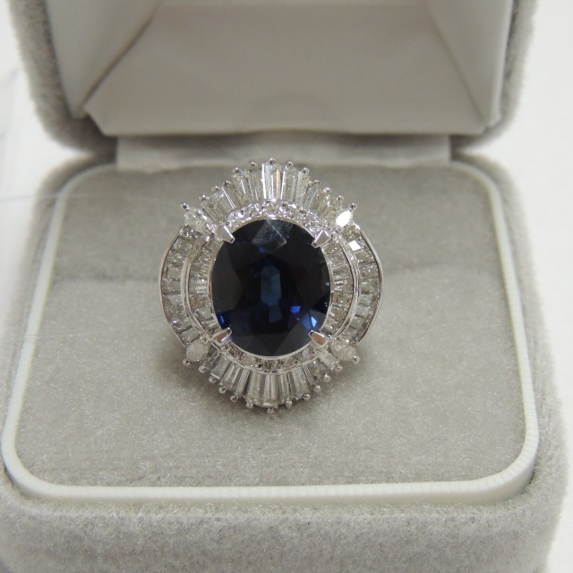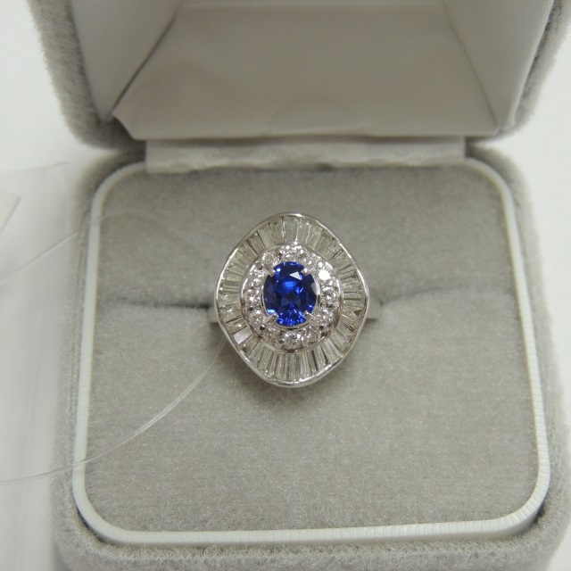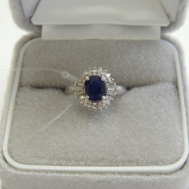 リング サファイア ダイヤ 加熱 Pt900 13.70g 中ソ 石目:1.83 1.348