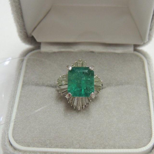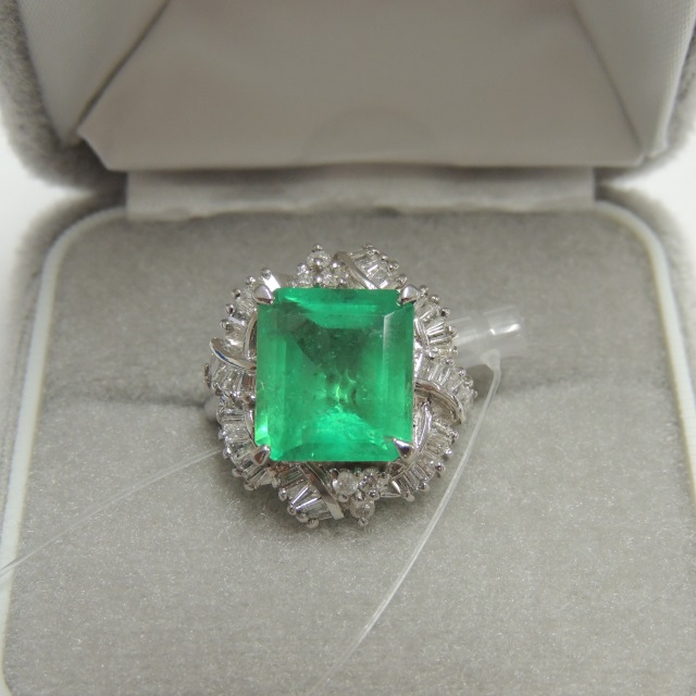リング エメラルド ダイヤ Pt900 10.00g GRJソ 石目:4.91 1.94