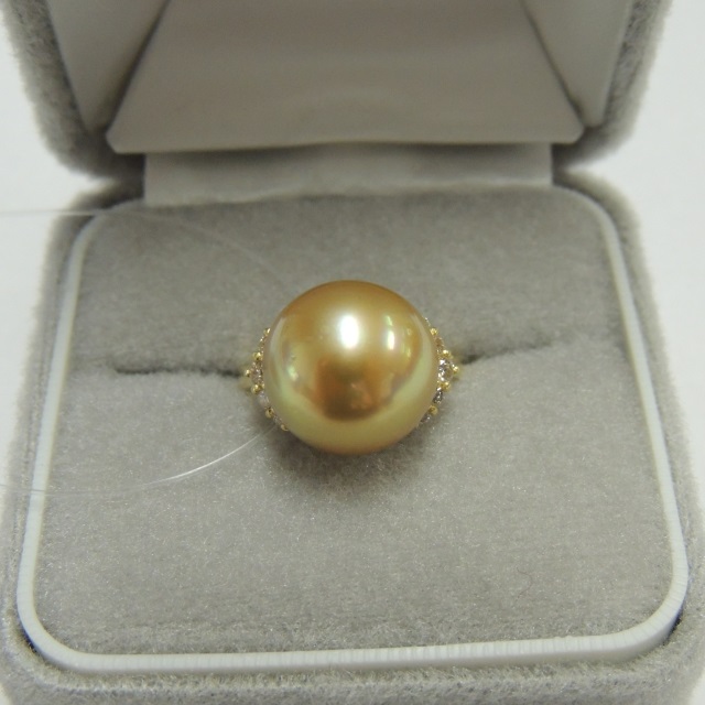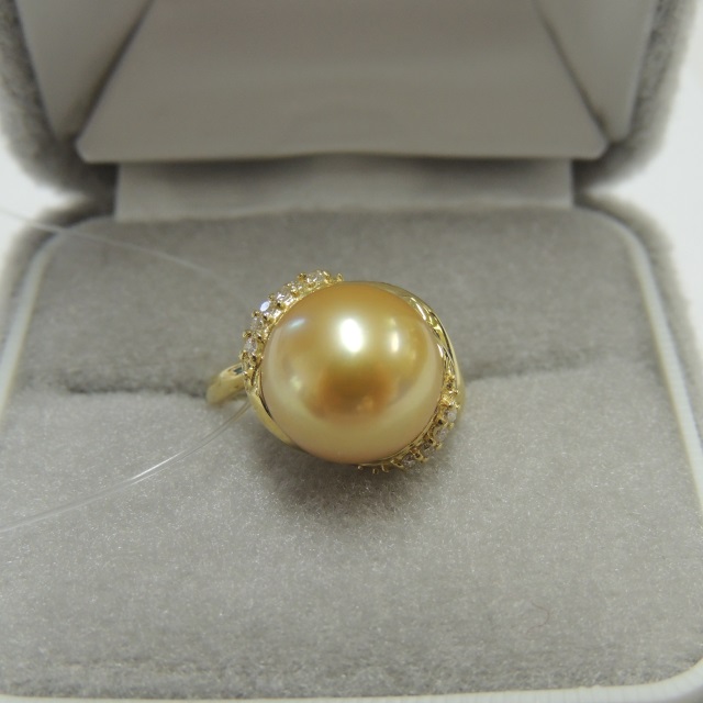 リング ゴールデンパール ダイヤ 13mm パール色保証 K18 7.20g 石目:D0.30