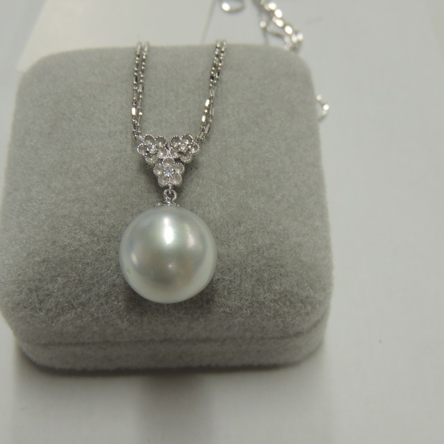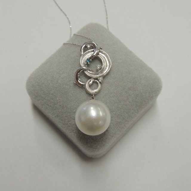 ネックレス パール ダイヤ 14mm K18WG 9.30g 石目:D0.042