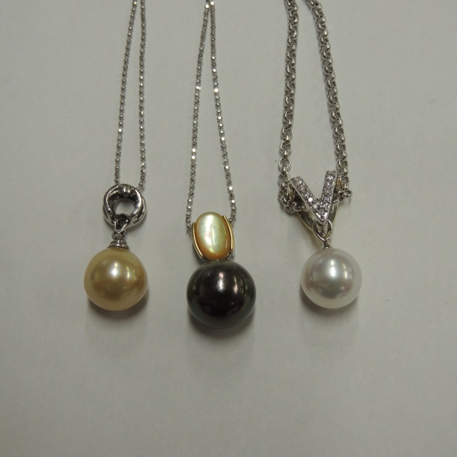 ネックレス パール ダイヤ 11mm-13mm Pt850/K18 24.30g 石目:0.13 0.14