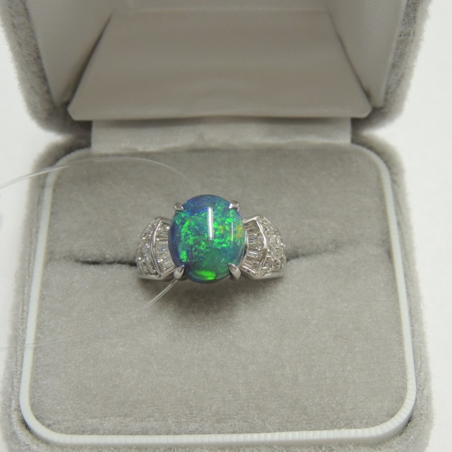 リング ブラックオパール Pt900 11.30g 全宝ソ 石目:O4.38 D0.66