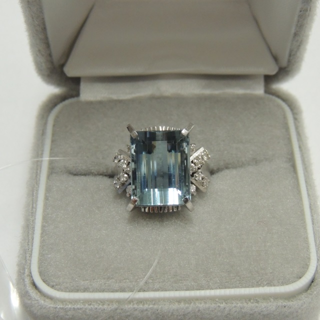 リング アクアマリン Pt900 12.60g 中ソ 石目:A10.31 D0.28