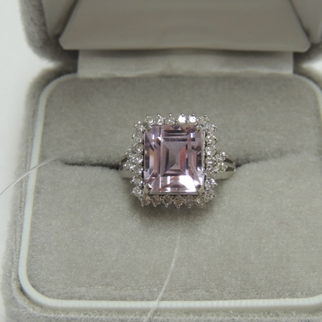 リング クンツァイト Pt900 11.50g 中ソ 石目:Q7.28 D0.60