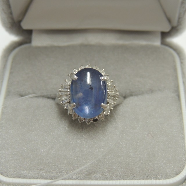 リング スターサファイヤ ▲メレ1P取れ Pt900 10.40g 石目:S8.15 D0.52