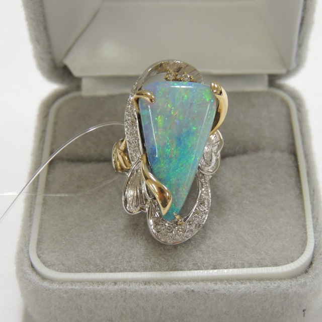 リング ボルダーオパール Pt900/K18 15.10g GRJソ 石目:BO11.20 D0.35