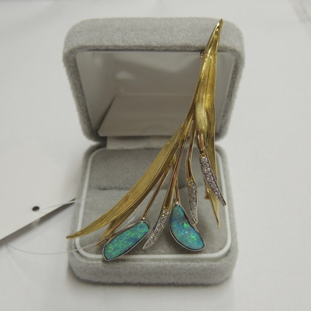 ブローチ ボルダーオパール Pt900/K18 19.70g 石目:FD0.23