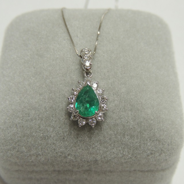 ネックレス エメラルド Pt900/850 4.80g 中ソ 石目:E1.10 FD0.54
