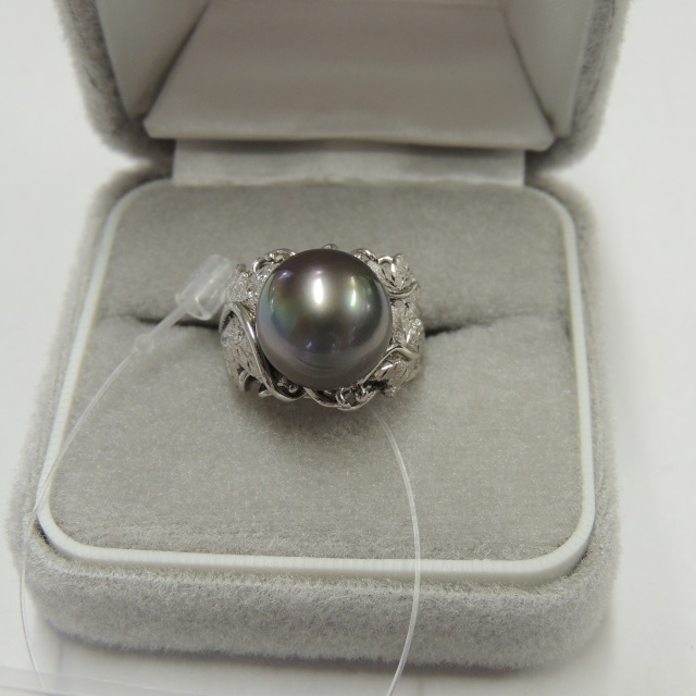 リング ブラックオパール 12.2mm Pt900 14.60g 中ソ 石目:D0.05