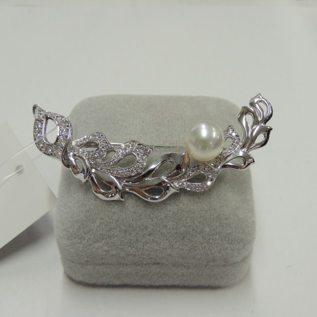 ブローチ パール 10.8mm Pt900 20.00g 石目:D1.38
