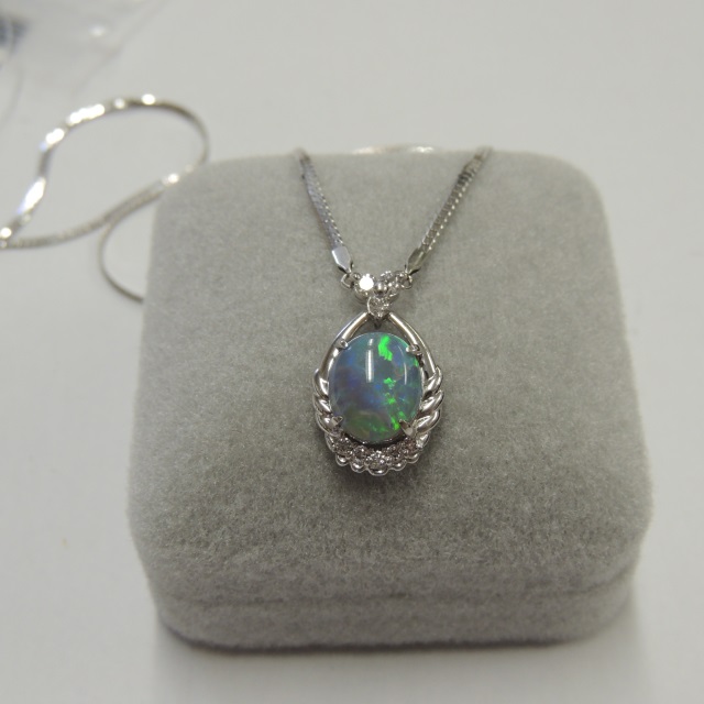 ネックレス ブラックオパール Pt900/850 10.70g 中ソ 石目:O3.61 D0.24