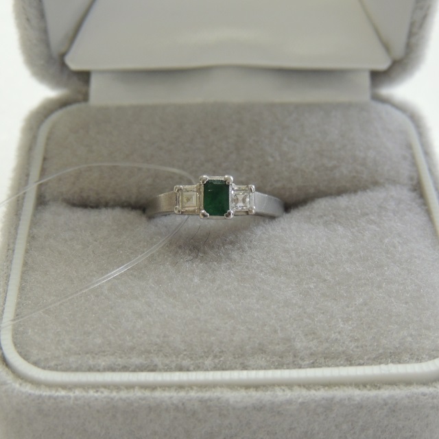 リング エメラルド ダイヤ Pt900 4.40g 石目:E0.20 FD0.22