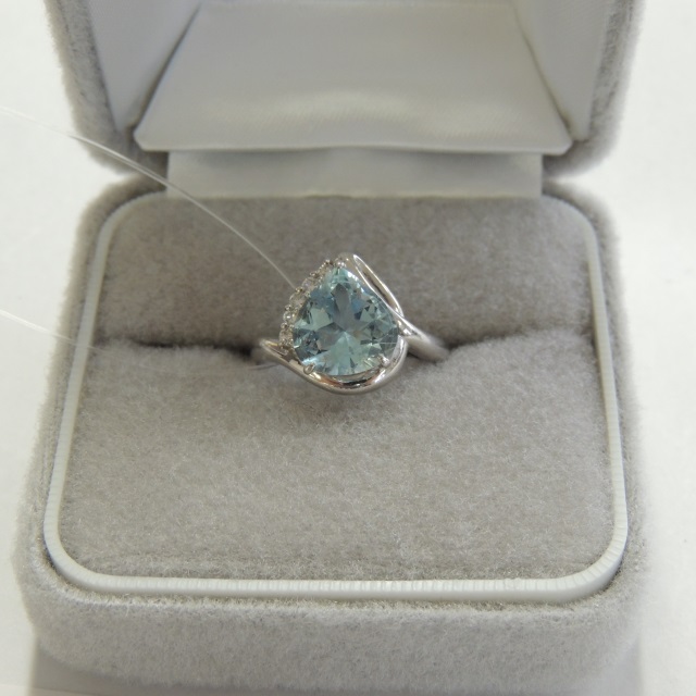 リング アクアマリン ダイヤ Pt900 6.10g 石目:AQ2.46 FD0.10
