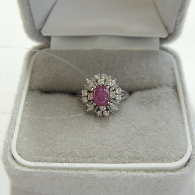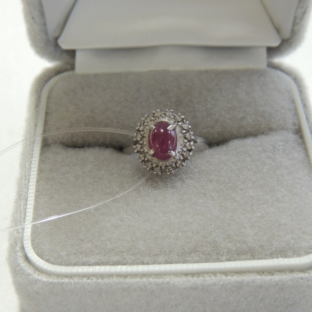 リング カボションルビー ダイヤ Pt900 3.60g 石目:D0.21