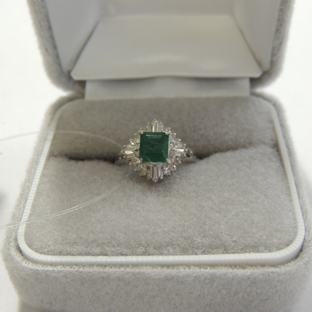 リング エメラルド ダイヤ Pt900 7.00g 石目:E0.30 FD0.13