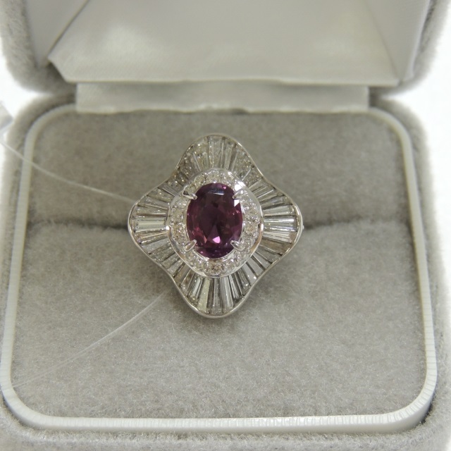 リング パープルサファイヤ Pt900 14.00g 中鑑 石目:PS1.89 FD0.292/2.28