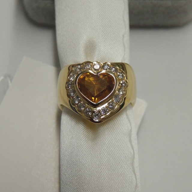 リング ゴールデンサファイア ダイヤ K18 10.20g 中ソ