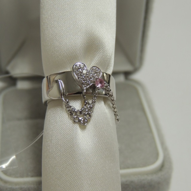 リング ピンクサファイア(ハートチェイン) K18WG 7.20g ソ 石目:PS0.07 FD0.18