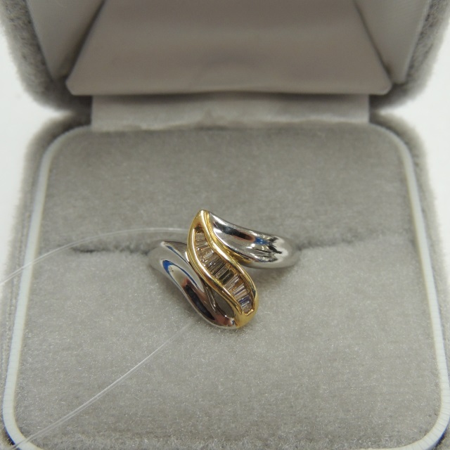リング 茶テーパーダイヤ K18/Pt850 5.40g 石目:0.30