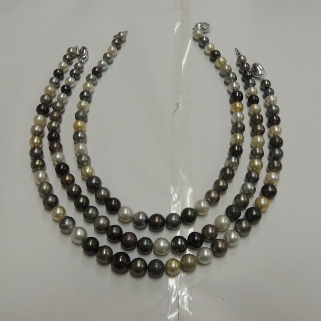 ネックレス オーロラピーコック黒蝶真ジュ 新品 13.9~10.9mm SV 真科鑑 箱