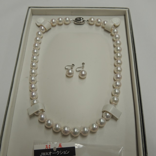 ネックレス イヤリング 花珠 アコヤパール 新品 9.0~9.5mm SV 真総鑑