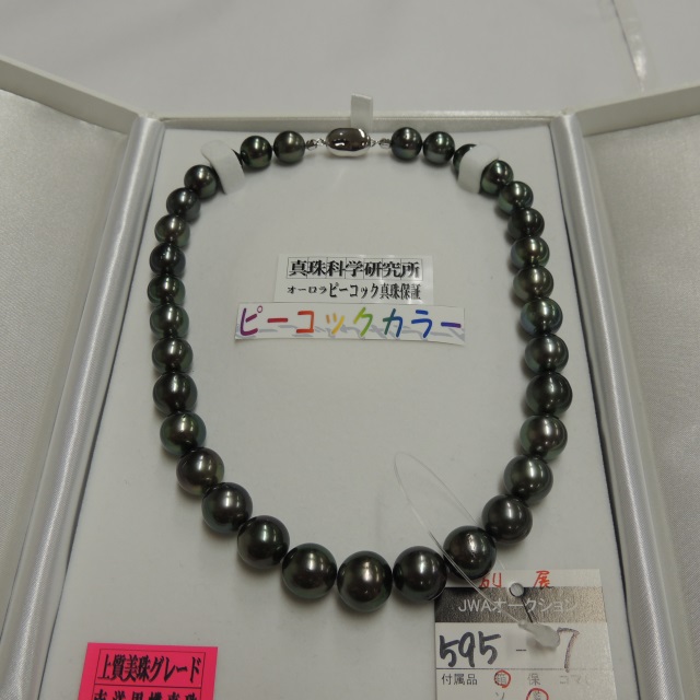 ネックレス オーロラピーコック黒蝶真ジュ 新品 13.7~11.0mm SV 真科鑑 箱