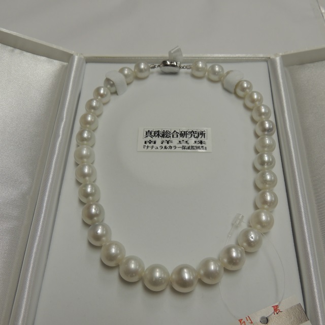 ネックレス ナチュラル南洋真珠 新品 14.0~12.0mm SV 真総鑑 箱