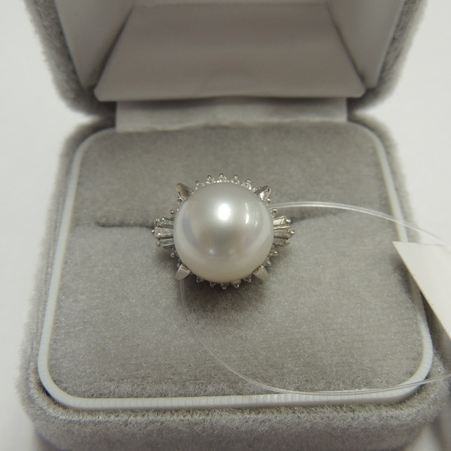 リング 南洋真珠 13mm ダイヤ Pt900 14.20g 鑑 石目:FD0.58