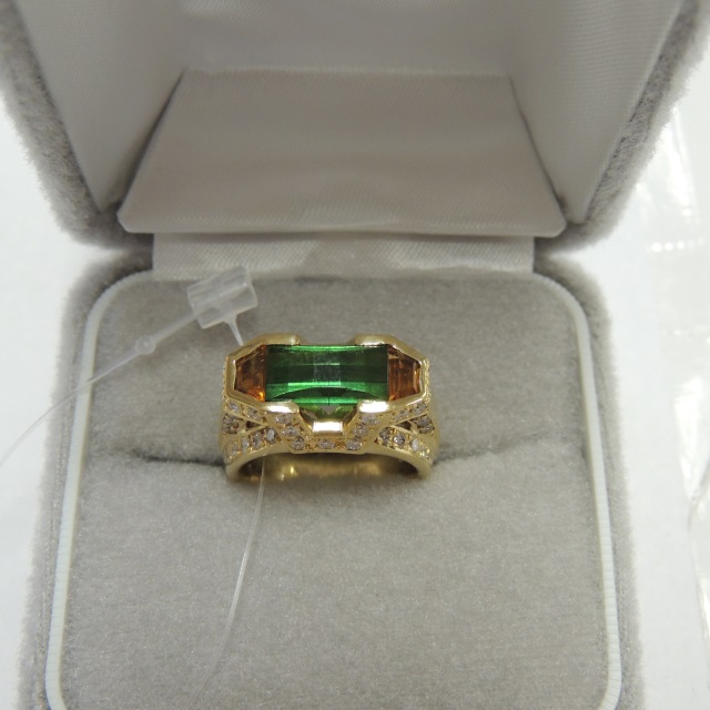 リング トルマリン シトリン ダイヤ K18 13.20g 石目:T3.45 C0.54 FD0.88