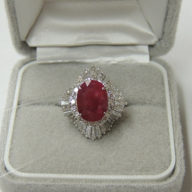 リング ルビー 非加熱 Pt850 15.50g GRJ鑑 石目:R4.265 D2.81
