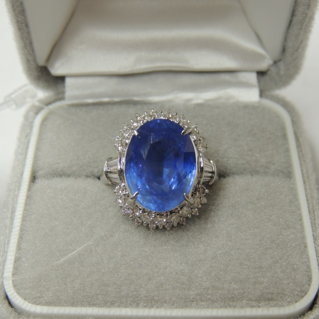 リング サファイヤ 非加熱 Pt900 17.90g 中鑑 石目:S13.637 D1.18
