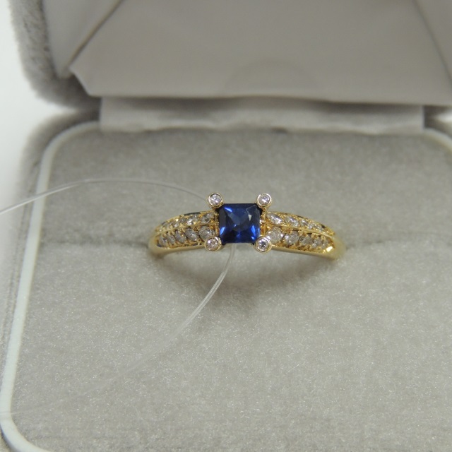 リング ダイヤ サファイア K18 3.80g 石目:0.90 0.76