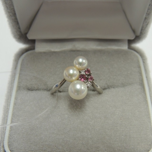 リング パール トルマリン ダイヤ Pt900 4.50g 石目:D0.03