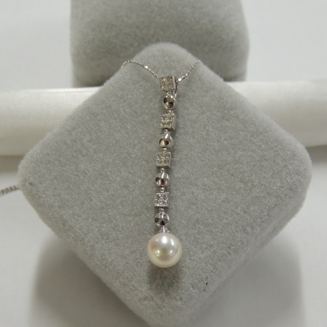 ネックレス パール PA8.2mm K18WG 4.00g 石目:FD0.11