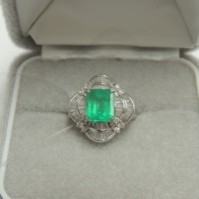 リング エメラルド ダイヤ Pt900 7.50g GRJソ 石目:2.01 0.74