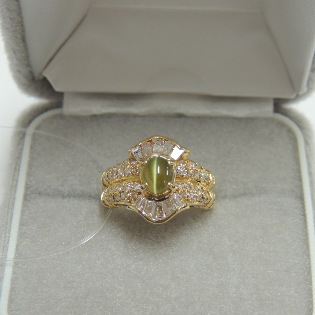 リング クリリベルキャッツアイ ダイヤ K18 6.10g 日米宝ソ 石目:1.59 FD1.05