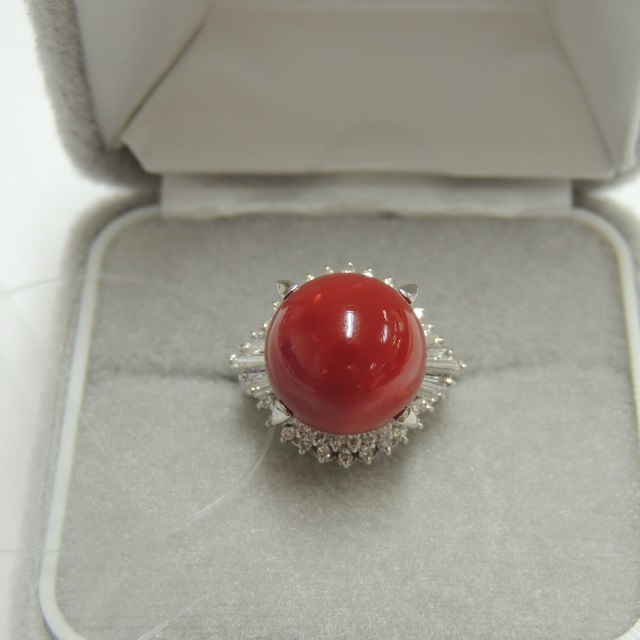 リング サンゴ ダイヤ ▲充填 Pt900 12.60g 日米宝ソ 石目:FD0.49