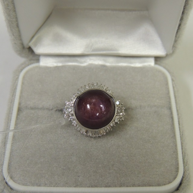 リング スターサファイア Pt900 12.80g 鑑 石目:SS9.82 D0.31