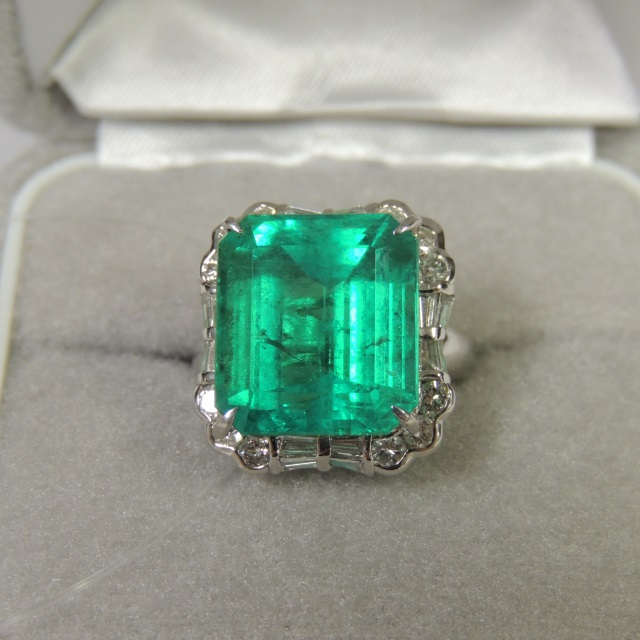 リング エメラルド Pt900 15.30g 石目:E14.14 D0.94