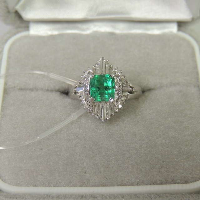 リング エメラルド ダイヤ Pt900 4.80g 石目:E:1.05 D:0.25
