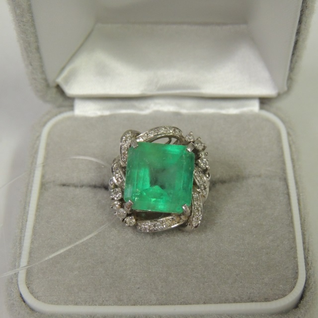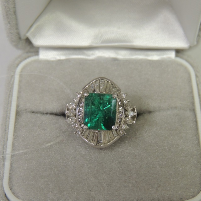 リング エメラルド ダイヤ Pt900 10.40g 中ソ 石目:E:2.84 D:1.06