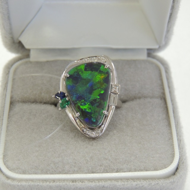リング ブラックオパール ダイヤ Pt900 15.70g 石目:BO5.15 D0.13 S0.11 E0.10